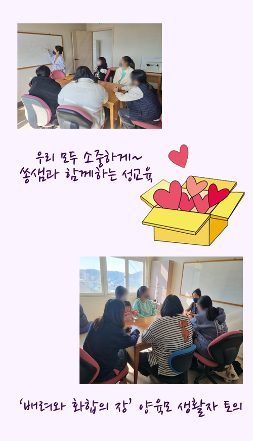 마리아모성원 돌 잔치 지난 8월 5일 사랑스러운 시온이의 돌잔치가 열렸습니다! 크게 아프지 않고 잘 커준 우리 시온이, 앞으로도 건강하게 무럭무럭 잘 커주기를 모성원 식구들 모두 기원합니다♥... 2022-08-24 대전자모원, 선진지 견학 "마리아모성원"기관 방문 소식 대전자모원에서 선진지 견학의 일환으로 종사자 분들이 저희 마리아모성원을 방문하셨습니다! 소중한 만남의 시간, 진심으로 감사드립니다.... 2022-07-18 2022년 건강한 여름을 부탁해! 2022년 건강한 여름나기! 프로젝트~~ 올 다가올 무더운 여름을 대비하여 모성원 가족들의 건강을 책임질 천연 모기퇴치 스프레이와 천연 버물린 밤을 만들어 보았습니다. 임산부와 아기들 모두가 안심하게 사용 가능한 천연 수제품입니다. ... 2022-06-08 성교육 프로그램&양육모 생활자 토의 성교육 프로그램과 양육모 생활자 토의를 진행하였습니다. 2022-03-30 << < 11 12 13 14 15 > >> 제목 작성자 내용