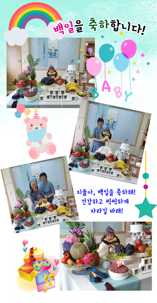 2020년 백일 잔치^^ 2020년 7월 22일 사랑스러운 지율이의 백일잔치가 있었습니다. 2020-07-23 일일 제빵 체험을 다녀왔습니다. 2020-9-14 '티라미슈 만들기' 제빵 체험을 다녀왔습니다. 2020-06-08 2020년 코로나19 감염예방 위생교육 및 방역활동 2020-04 코로나19 감염으로부터 우리를 지키도록 노력하고 함께 극복합시다! 2020-03-17 2020년 마리아모성원 설날 풍경 2020년 새해를 맞이하여 퇴소모자가정을 방문하여 선물 나눔을 하였습니다. 2020-02-12 << < 16 17 18 19 20 > >> 제목 작성자 내용