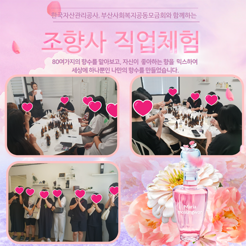 2023 부모교육(긍정적으로 아이 키우기) 2023년 부모교육을 9회기 진행하였습니다. 2023-09-30 2023년 퇴소가정 추석맞이 물품 지원 마리아모성원에 퇴소하신 18가정에 키우미박스를 지원하였습니다^^ 2023-09-11 2023 직업체험(조향사) 조향사 직업체험을 다녀왔습니다^^ 2023-09-11 마리아모성원 돌잔치 사랑스러운 예*이의 행복한 돌 잔치가 열렸습니다. 첫 생일을 축하하며, 예* 엄마의 앞날을 응원합니다! 2023-09-02 << < 6 7 8 9 10 > >> 제목 작성자 내용